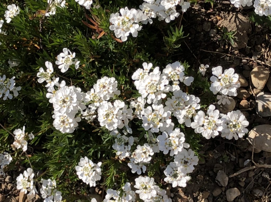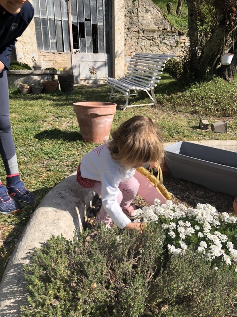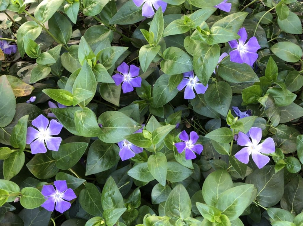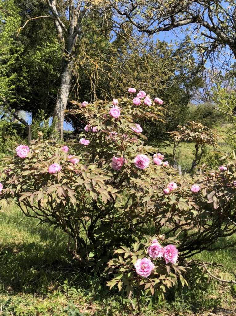 Superbes pivoines et pervenches et….belle propriété bien entretenue.