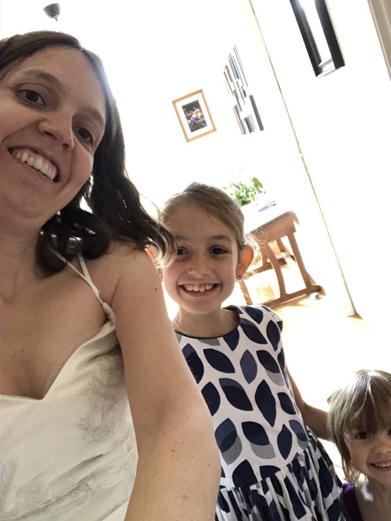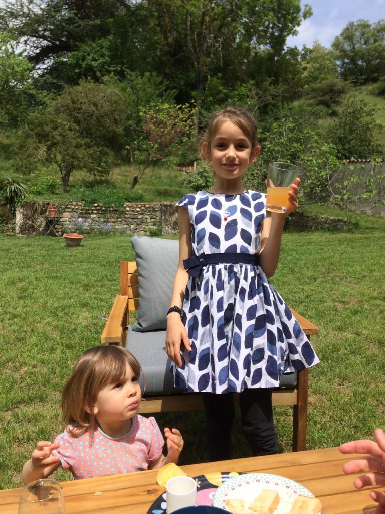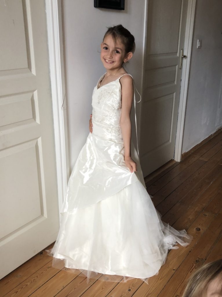 Dimanche 12 ans de mariage, Clarisse porte un toast ! Elle a voulu essayer ma robe, une véritable princesse. J’ai du l’essayer aussi mais j’étais un peu plus serrée qu’il y a 12 ans…