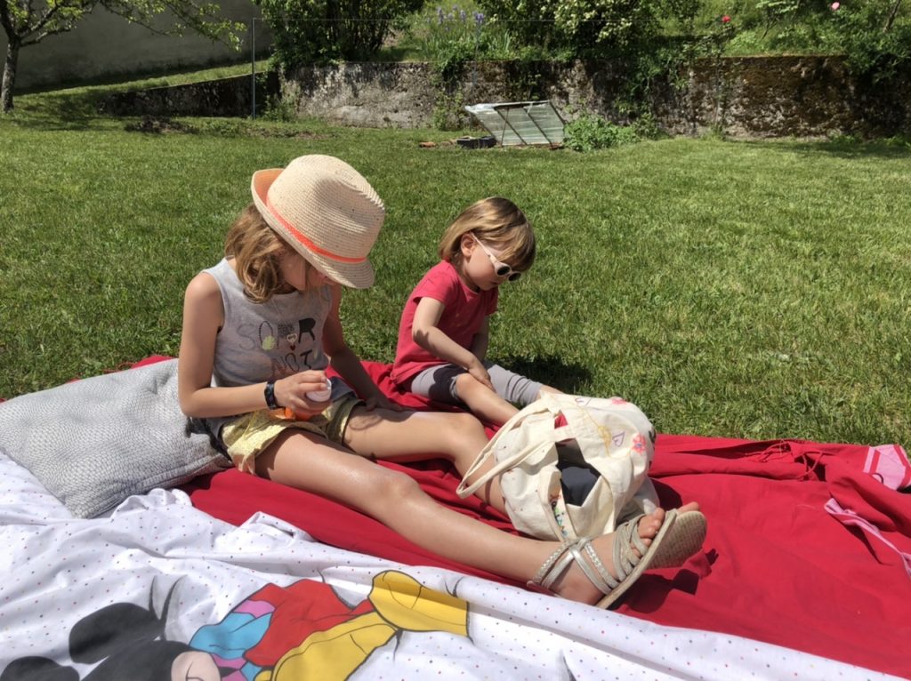 Samedi, les filles profitent du soleil. Il ne faut pas oublier de se mettre de la crème !