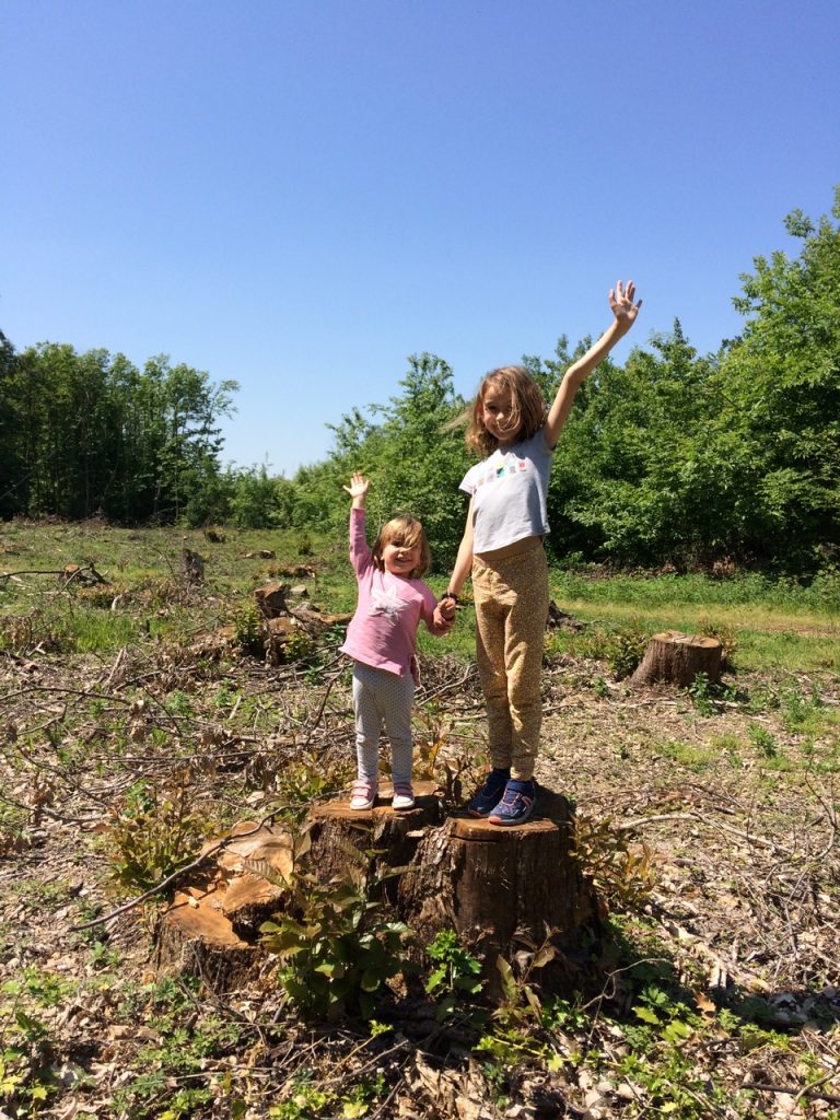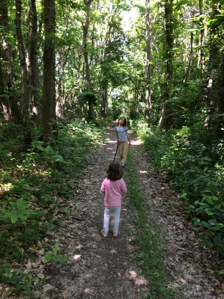 Petite promenade dans les bois avec papa pendant que je suis au travail.