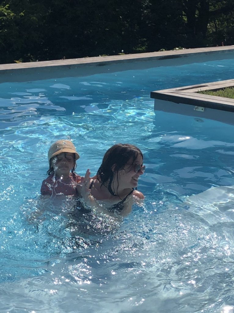 Vendredi, après-midi chez tata Marie. On a bien profité de la piscine. Clarisse a même appris à plonger grâce aux bons conseils de tonton Lionel (dommage que je n’arrive pas à mettre de vidéo).