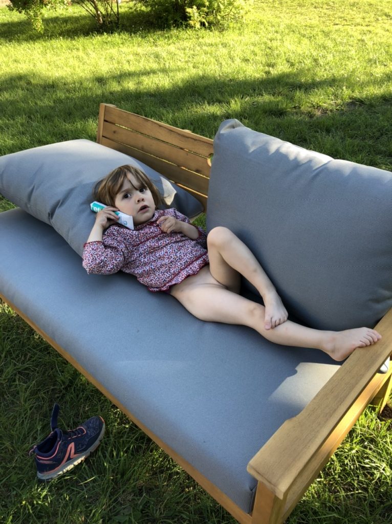 La choupinette profite un maximum du jardin, dans toutes les tenues…