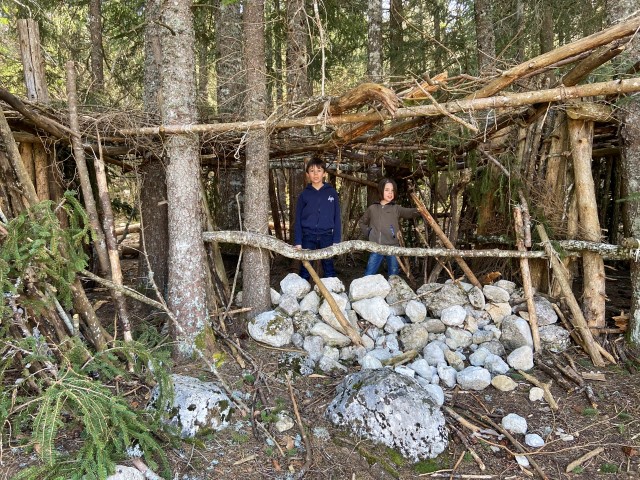Sur le chemin de la cabane, on fait une visite plus détaillée du campement. Du beau travail.